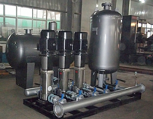 恒压变频供水设备,由防污隔断单元、变频加压单元、压力补偿单元、压力变送器、微机控制单元和管路系统等组成,并在市政供水管网允许的条件下,通过变频水泵运行或非运行时间均能自动、连续地向给水管网供水的设备。